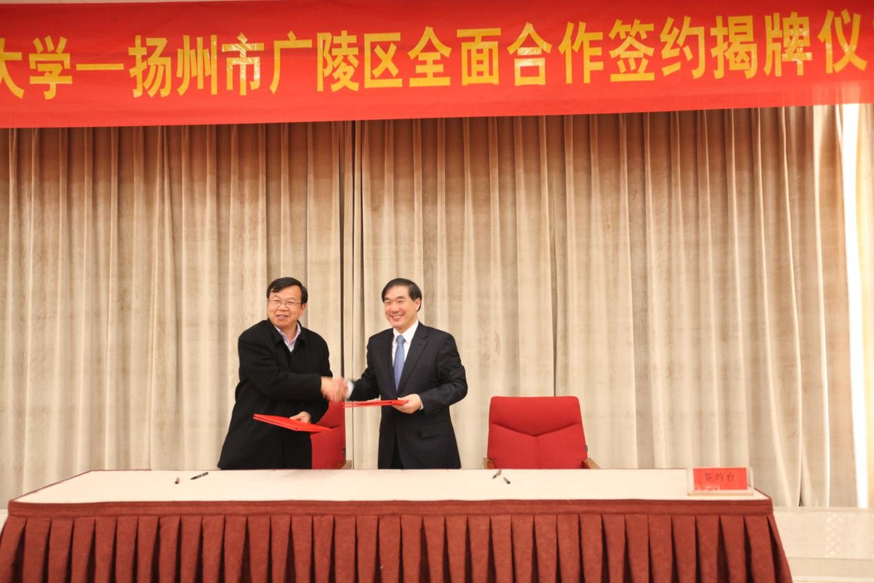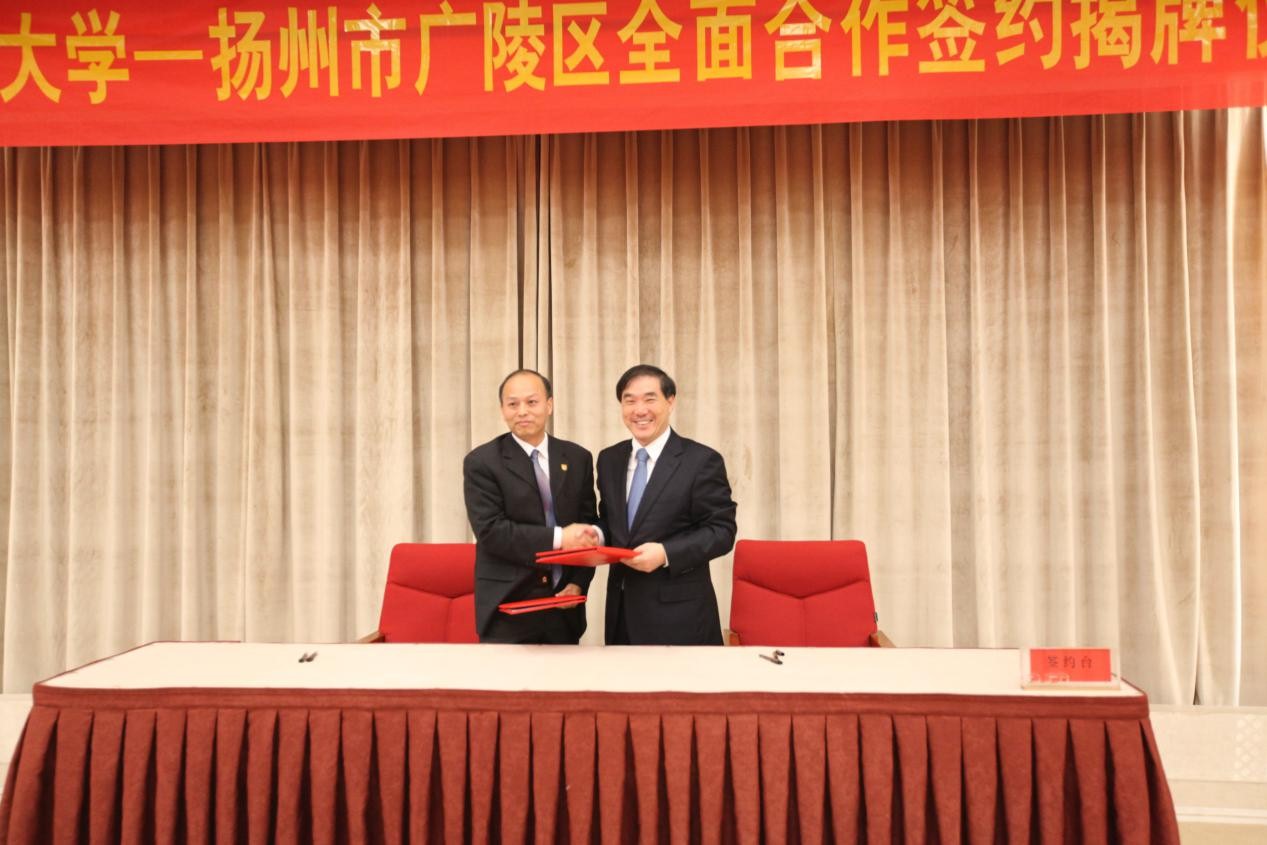扬州市广陵区区长陈曦与德赢官网理事周南平签署合作协议