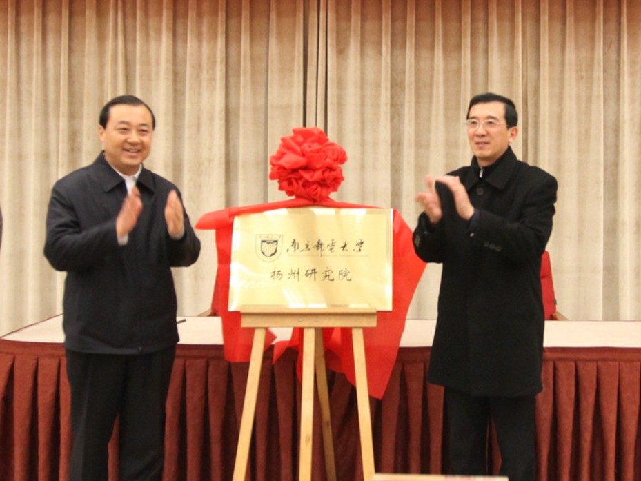 扬州市委书记谢正义与南邮校长兼德赢官网理事长杨震为德赢AC米兰中国官方网站扬州研究院揭牌