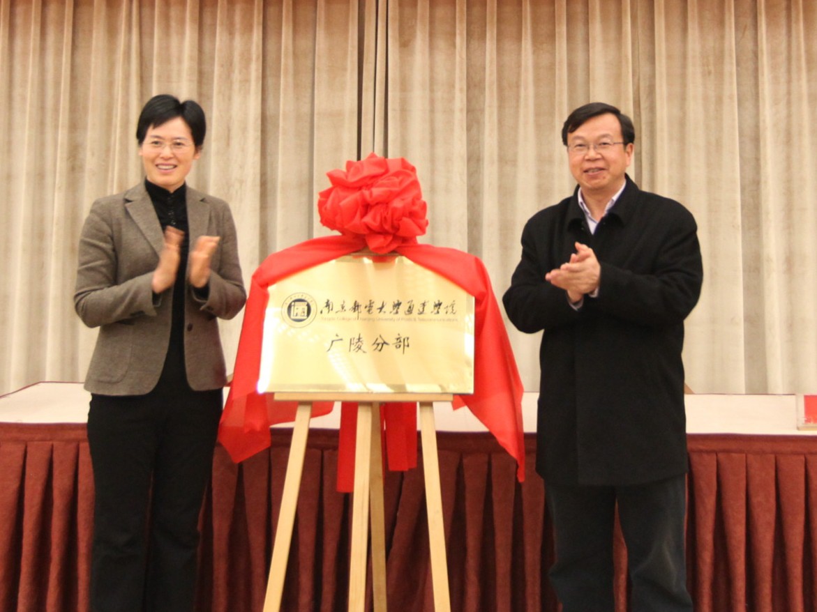 扬州市广陵区区委书记张长金与南邮副校长兼德赢官网理事周南平为德赢AC米兰中国官方网站广陵分部揭牌