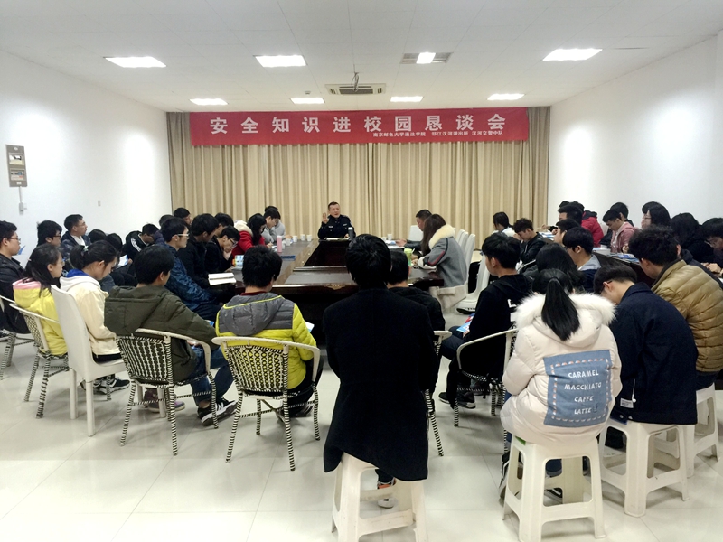 3月16日上午,学院学工处(保卫)联合扬州市邗江汊河派出所、汊河交警中队在学院展开预防诈骗、文明出行等安全教育主题恳谈会。学院党委书记戴兆骏、保卫负责人陈平波、汊河派出所副所长贾宇翔、汊河交警中队多名警官及德赢官网2016级班长、团支书参加了本次会议。