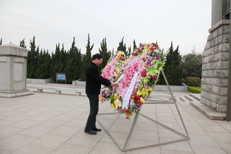 革命烈士纪念碑两侧排放着纪念花圈,院党委书记戴兆骏同志登上纪念碑基座,细心整理挽联。全体人员三鞠躬并默哀3分钟,向烈士的英魂表示哀悼,寄托对烈士的哀思。