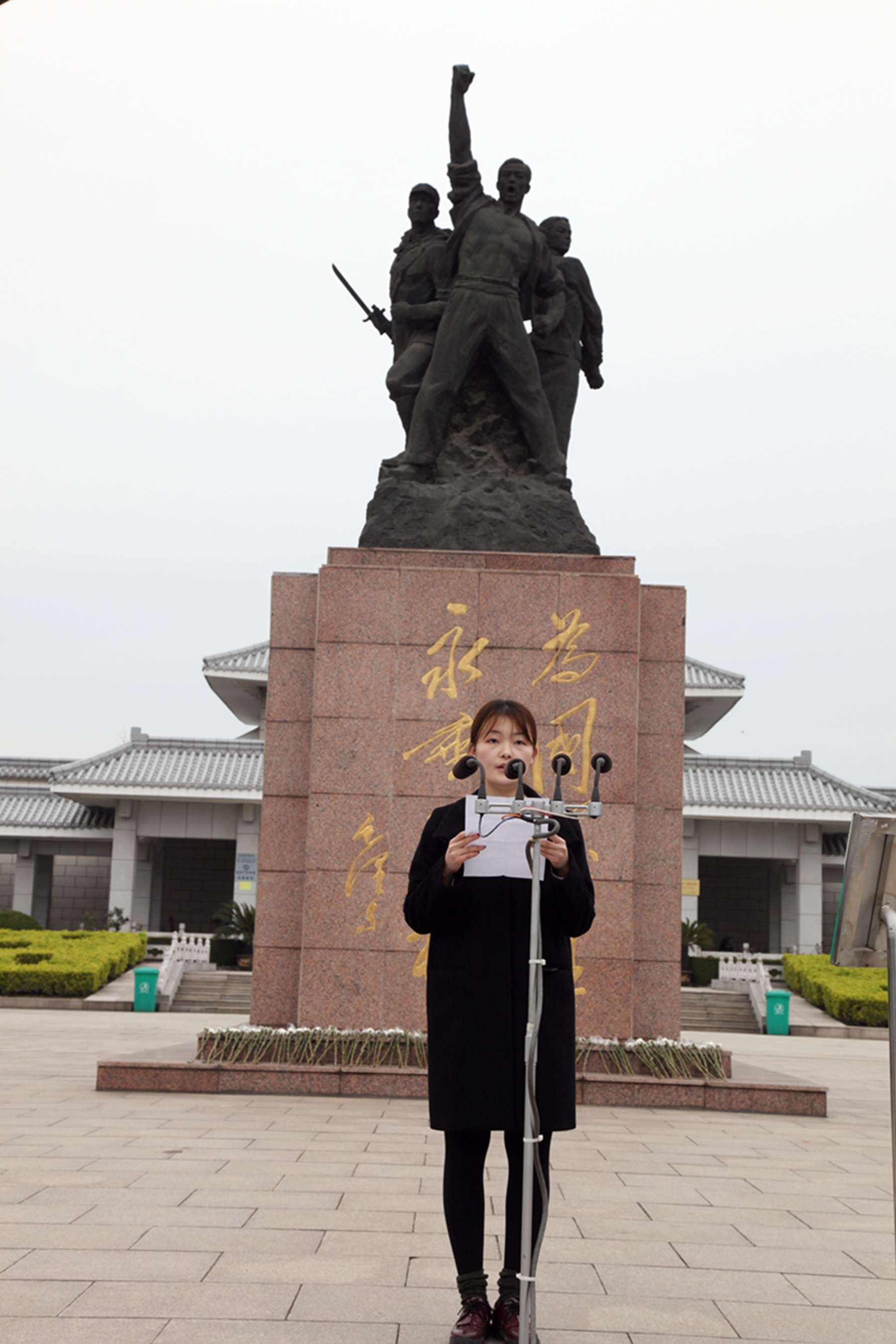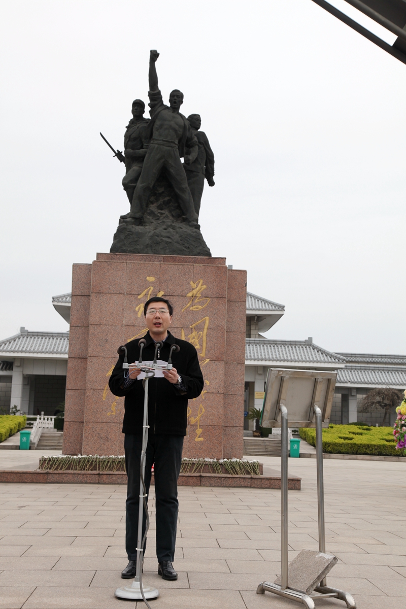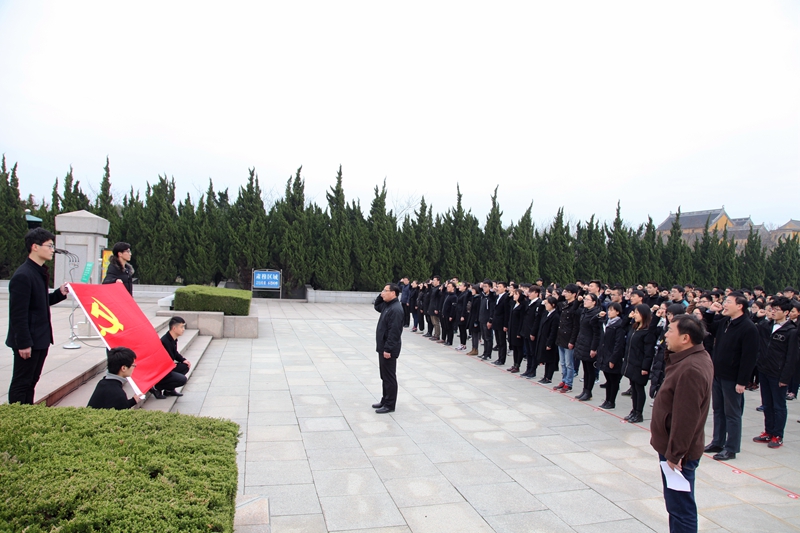 3月19日上午,德赢官网党委组织了“缅怀革命先烈,弘扬爱国精神”为主题的祭扫烈士墓暨党员宣誓活动。学院党委委员、各党支部书记、学生党员及入党积极分子210多人,怀着崇敬的心情来到扬州烈士陵园凭吊英灵。祭扫烈士墓暨党员宣誓仪式由党委委员、党委办公室主任甘宗盛同志主持。