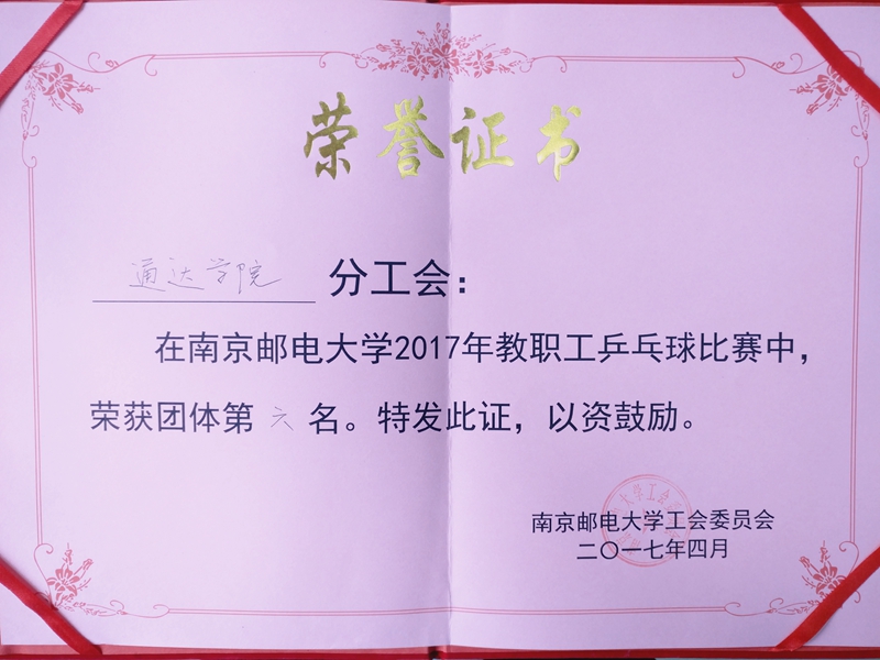 4月22、23日,德赢AC米兰中国官方网站教职工乒乓球比赛在仙林校区体育馆二楼举行。通达学院教职工乒乓球代表队斗志昂扬,奋勇拼搏,取得了团体第六名的好成绩。