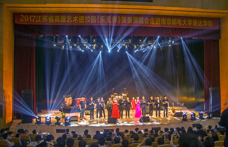 5月3日晚,2017年江苏省高雅艺术进校园项目《乐无界》演奏演唱会在德赢官网大学生活动中心大礼堂举行。《乐无界》演奏演唱会由江苏省教育厅、江苏省财政厅主办,江苏演艺集团和德赢官网承办,德赢官网院长宗平、党委书记戴兆骏、党委副书记王立辉以及师生代表1000余人观看了本次演出。