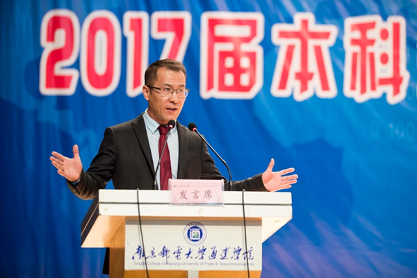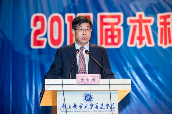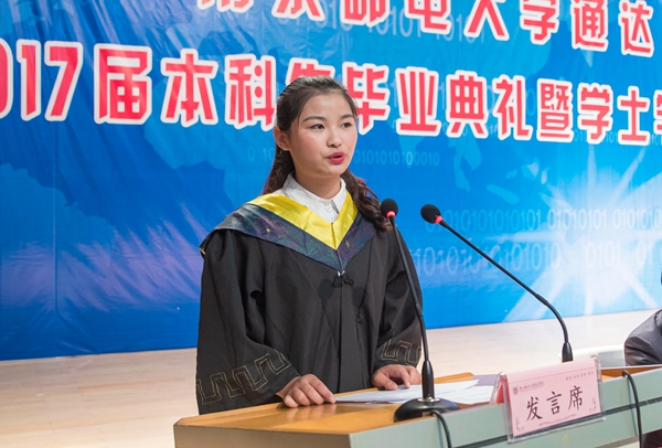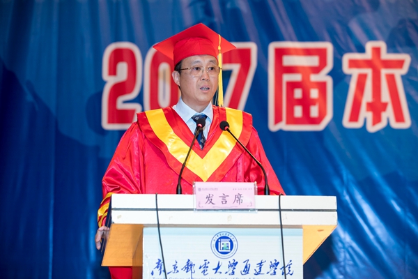 院长宗平教授在致辞中向学院2017届毕业生表示最热烈的祝贺,对毕业生们在四年中取得的优异成绩给予充分肯定,同时也提出了四点期望:一要学习不止、进取不已;二要勤字为先、精字当头;三要首尾一贯、持之以恒;四要审时度势、放眼全局;争取有更大的作为。