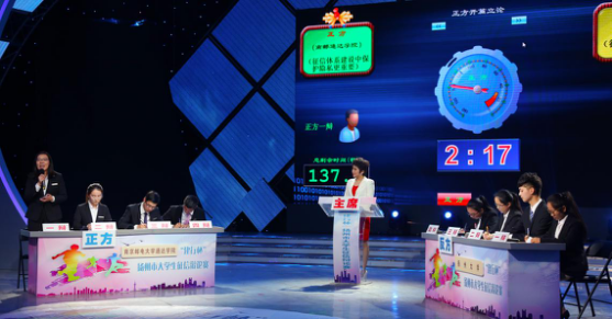 “建行杯”扬州市大学生征信知识辩论赛自5月26日启动以来,来自在扬高校的八支代表队经过四强赛、半决赛激烈角逐,德赢官网辩论队与扬州大学,扬州市职业大学、扬州大学广陵学院辩论队共同挺进决赛,分别围绕“征信体系建设中是保护隐私重要还是信息共享重要”、“诚信体系建设主要是重褒奖还是重惩戒”两个辩题进行冠亚军、三四名的争夺。辩手们据理力争,引经据典,比赛过程激动人心,高潮迭起。