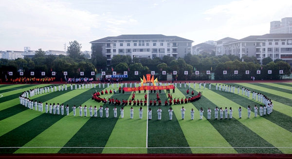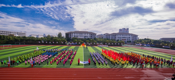 入场仪式上,校旗队、彩旗队、鲜花队、气球队、各二级学院、教师代表组成的方阵队伍迈着整齐划一的步伐、喊着铿锵有力的口号陆续走过主席台。604名运动员参加了比赛,经过激烈角逐,通信工程学院获得冠军,商学院获得体育道德风尚奖。