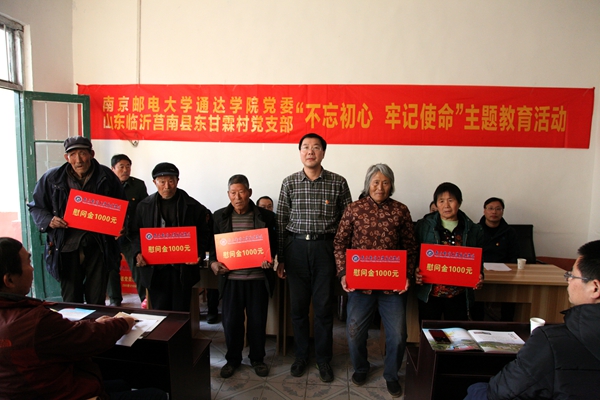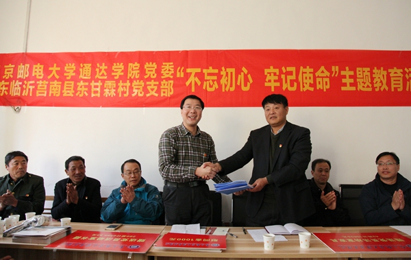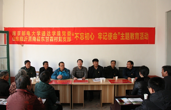 在东甘霖村党支部党员活动室,德赢官网与东甘霖村党支部联合召开主题教育活动座谈会。座谈会由学院党委副书记王立辉主持。座谈会上,坊前镇党委书记李先军作了《沂蒙革命传统》报告,他指出,临沂作为沂蒙精神的发源地,沂蒙精神的内涵就是“爱党爱军、开拓奋进、艰苦创业、无私奉献”,其特点是人民性,体现的是血浓于水的党群关系,和延安精神、井冈山精神、西柏坡精神一样都是党和国家的宝贵精神财富。东甘霖村党支部书记王汝强讲解了“山东抗日根据地的八路军战邮干训班”和东甘霖村的革命传统。1942年,山东抗日根据地的八路军战邮干训班于东甘霖村创办,至1947年,“战邮干训”这个革命据点一直没有变,东甘霖村堪称“红色堡垒村”。院党委委员、党办主任甘宗盛,学工处党支部书记解厚荣,教师党支部书记邵雪晴等先后发言,认为沂蒙精神感人,深受教益。回顾、重温沂蒙革命斗争艰辛历史,是为了不忘初心,牢记使命,汲取动力,更好地再出发;回顾、重温“战邮干训班”史料,是为了深化了解学校开创史,弘扬“信达天下、自强不息”的南邮精神,强化责任意识、使命意识。学院党委书记戴兆骏作了“传承红色基因、谱写通达新篇”的主旨发言。戴书记饱含深情地谈了三点体会:第一,不忘初心,历史是最好的教科书,在新的历史时期,我们更需要重温历史、珍惜红色传统,继承和发扬我们学校和革命老区的红色基因,在继续前进中绽放出红色光芒。第二,坚定信念,学习是最好的传承,传承红色基因,靠的是与时俱进的学习教育。要坚持以“两学一做”常态化制度化学习教育为契机,重温红色经典、继承红色传统,以学促做、学做合一,在传承红色基因中做一名合格的共产党员。第三,牢记使命,真抓实干是最好的担当,从红色基因中汲取力量,最终都要落实到担当有为、真抓实干上,在决胜全面建成小康社会的伟大实践中建功立业,再谱通达发展新篇章!