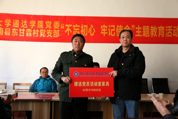 共建活动中,院党委书记戴兆骏与坊前镇党委书记李先军签署捐赠协议,向东甘霖村党支部捐赠图书、家具,支持东甘霖村党支部改善党员活动室的条件,并资助东甘霖村五名生活困难党员、群众各1000元。戴兆骏书记还走进贫困群众家中,与群众亲切交谈,拉家常、问冷暖,送上捐赠款。