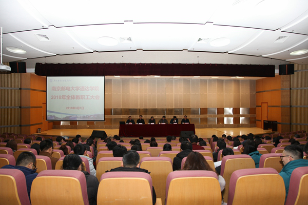 3月7日下午,德赢官网在行政楼报告厅举行2018年全体教职工大会。会议全面总结了2017年工作完成情况,布置了2018年主要工作,领导班子成员分别进行了述职。学院院长宗平、党委书记兼副院长戴兆骏、常务副院长周西峰、副院长包刚、副院长盛大铨、党委副书记兼副院长王立辉出席大会,全体教职工参加了大会。会议由党委副书记王立辉主持。