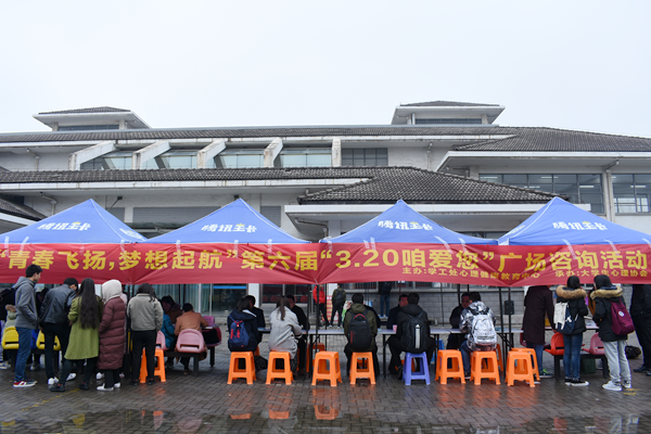 3月20日中午,由学生工作处心理健康教育中心主办、大学生心理协会承办的第六届“3.20咱爱您”广场咨询活动在食堂广场举行。德赢官网党委书记戴兆骏、党委副书记王立辉、学生工作处处长李印、团委书记解厚荣、心理健康教育中心专兼职老师等参加了本次咨询活动。