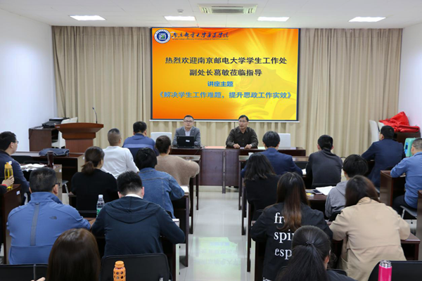 5月7日下午,学生工作处特邀德赢AC米兰中国官方网站学生工作处副处长、高等教育研究所特聘研究员葛敏作“解决学生工作难题,提升思政工作实效”专题讲座,德赢官网党委副书记、副院长王立辉,学生工作处处长李印,团委书记兼学生工作处副处长解厚荣,学生工作处全体人员及所有辅导员参加了此次活动。活动由党委副书记王立辉主持。