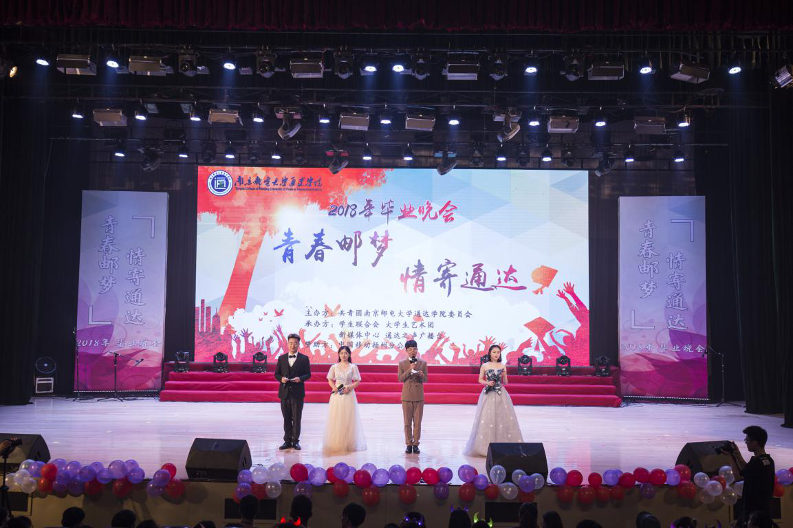 6月13日晚,由德赢官网团委主办,学生会、大学生艺术团、新媒体中心、通达之声广播台共同承办的“青春邮你,情寄通达”2018年毕业晚会在大学生活动中心大礼堂举行。院党委书记戴兆骏、常务副院长周西峰、副院长包刚、副院长盛大铨、党委副书记王立辉、中国移动扬州分公司市场经营部经理林勇、邗江营销中心校园部经理丁苏以及德赢官网各部门负责人、2014级辅导员、2018届毕业生等1000余人共同观看了本次晚会。