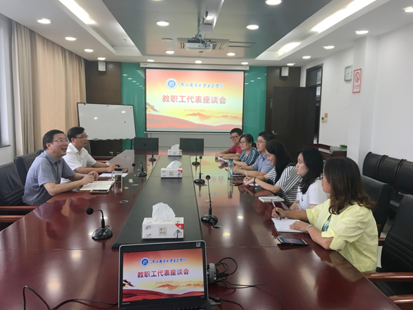 9月28日下午,德赢官网在行政楼10楼会议室召开教职工代表座谈会,院党委书记戴兆骏和各工会小组的教职工代表参加座谈会。座谈会由院党委副书记、工会主席王立辉主持。