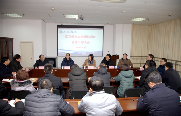 2019年1月2日下午,南邮通达学院召开全体干部大会,德赢AC米兰中国官方网站党委常委、副校长孙力娟讲话,党委组织部钟凯副部长宣读文件,汪业周同志担任南邮通达学院党委书记,免去戴兆骏同志的党委书记职务,另有任用。