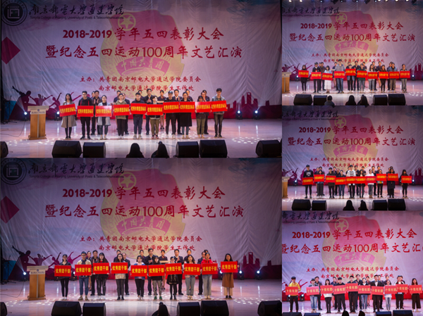 在表彰环节,党委副书记、副院长王立辉宣读了《关于表彰2018/2019学年先进团组织和个人的决定》和《关于表彰2018/2019学年“传承五四报国志,争做通达新青年”十佳主题团日活动的决定》。本学年,学院共有10个团支部荣获“五四红旗团支部”称号,18个团支部荣获“先进团支部”称号;共评出优秀共青团员标兵14名、优秀团干部24名、优秀社团干部45名、优秀共青团员219名、社团活动积极分子244名、十佳社团10个、十佳团支书10名。通信工程学院、电气工程学院分团委荣获“五四红旗团委”称号,司艺、余西亚老师荣获“优秀共青团工作者”称号。全体院领导为受表彰的先进集体和个人颁奖。