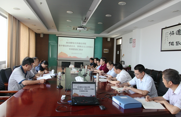 6月14日,南邮纪委委员、财务处处长张进,巡察办杨瑞到德赢官网,就第一轮集中整治形式主义、官僚主义工作情况开展专项督查调研。学院领导班子全体成员、党办主任、党风联络员、特邀监察员等参加调研会。