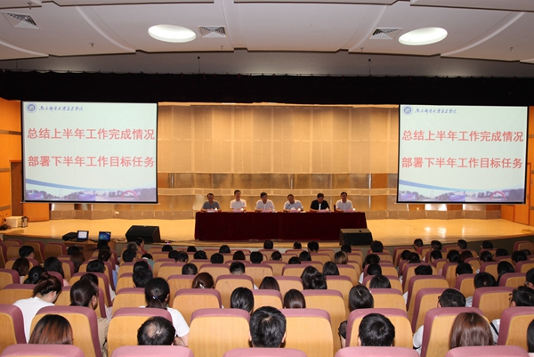 汪书记代表学院党政领导班子从党建和思想政治工作、办学顶层设计、内涵建设、学生管理、基本建设与民生工程等五部分21个方面总结了2019年上半年工作完成情况。他指出,经过全体师生的共同努力,学院上半年在顶层设计、专业建设及人才培养体系构建等方面取得了较大突破,基本完成各项任务。他向付出辛勤劳动和做出贡献的教职员工表示衷心的感谢和崇高的敬意!