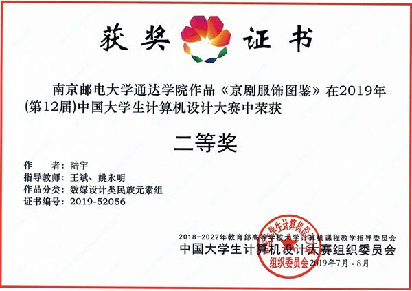 7月17日-8月22日,2019 年(第12届)中国大学生计算机设计大赛国赛根据作品的类别,分别由吉林大学、北京大学、安徽师范大学、宿州学院、杭州电子科技大学、浙江音乐学院六所高校承办。本次国赛共有来自30个省、595所高校共3822件作品参加,参赛作品分为15个大类,48个小类。