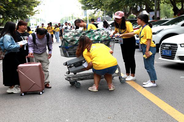 各辅导员认真为新生办理入学手续,耐心解答新生疑惑;穿着黄色文化衫的志愿者们热情而周到,向新生详细介绍报到流程和学院概况,陪同他们到各工作点办理手续,“抢”下新生和家长手中繁重的行李,不停地穿梭在校园的每一个角落。在做好普遍服务的同时,更加注重精准服务,给特殊学生提供更加无微不至的个性化服务。