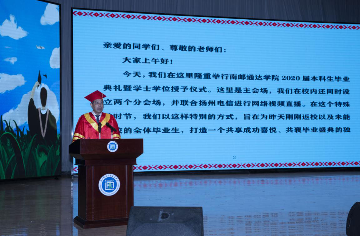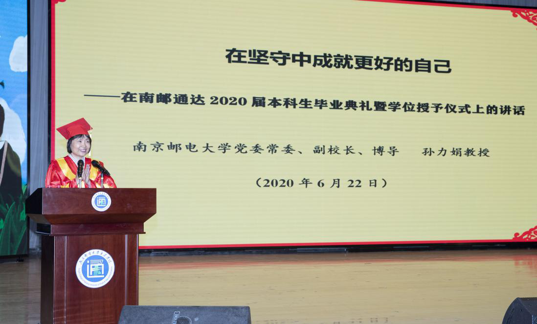 德赢AC米兰中国官方网站党委常委、副校长孙力娟教授发表题为《在坚守中成就更好的自己》的毕业讲话。她首先代表德赢AC米兰中国官方网站向圆满完成学业的同学们表示最热烈的祝贺,向精心培养同学们成长成才的教职员工、家人亲友表示最诚挚的问候,向一直以来关心支持德赢官网发展的扬州市委市政府表示最衷心的感谢。她提出在当代社会和当下世界,在今年这个特殊的毕业季,灾难风险成为高频热词,如何面对成为关键一招,人类向何处去成为深度关切。全体毕业生应思考三个问题:我们应以怎样的态度面对?我们应对的力量来自何方?我们如何坚守人类的初心?她围绕坚守这个话题提出:第一,信念是坚守的原初动力;第二,实干是坚守的直接动力;第三,创新是坚守的不竭动力。她寄语全体毕业生坚定守卫出发的初心,坚决保持奋斗的姿态,坚持提升创新的本领,在坚守中成就更好的自己!