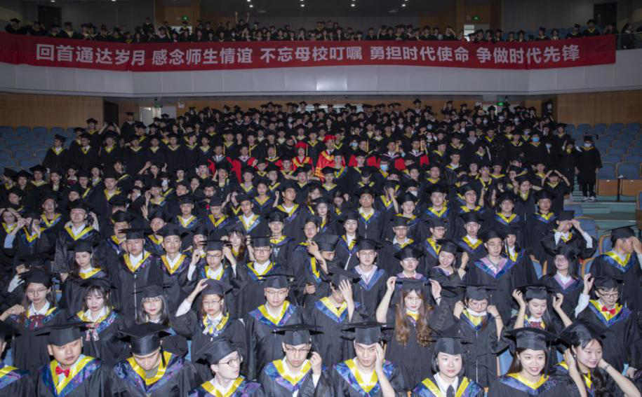 2020届本科生毕业典礼暨学位授予仪式在歌曲《星辰大海》中圆满结束。各位领导亲切地走进同学们之中与全体毕业生合影留念。