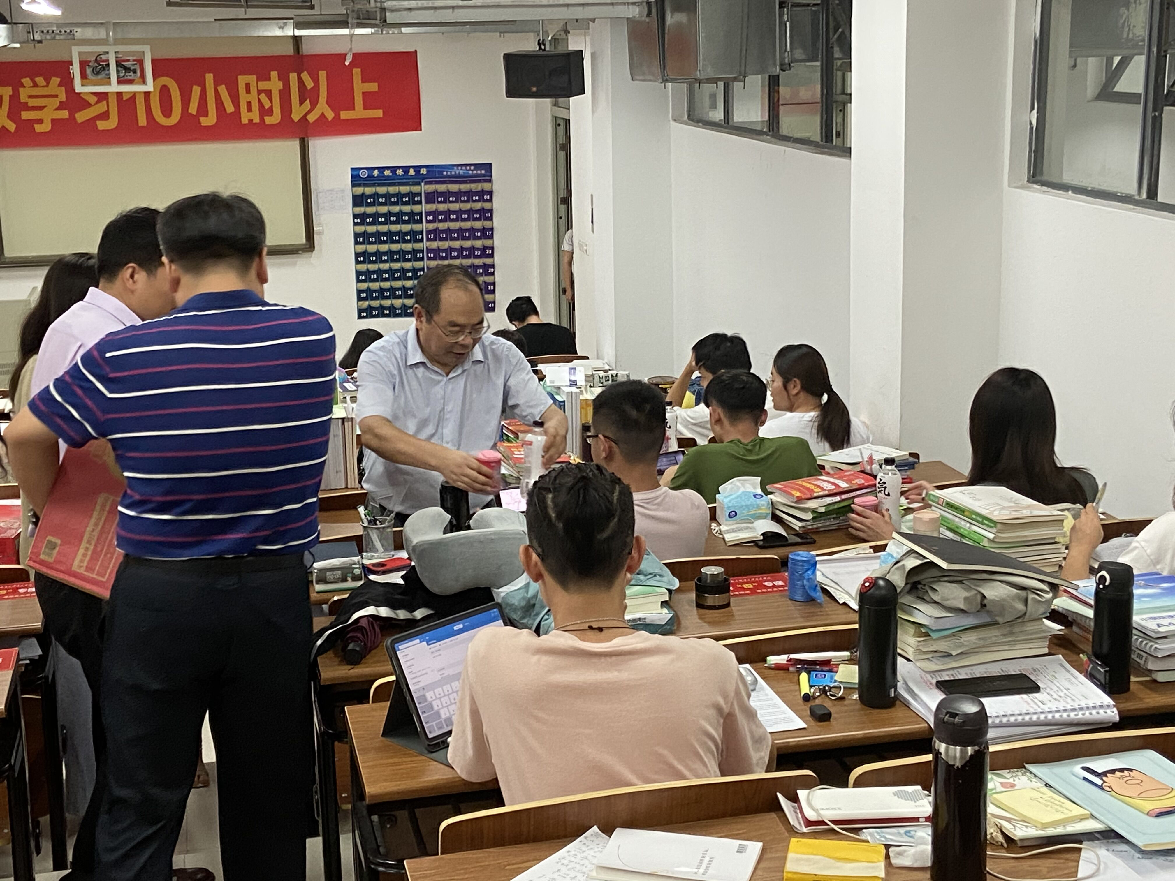 在考研教室,领导、老师们为考研学生送上了慰问品,并鼓励同学们坚守考研初心,坚持考研梦想,为实现考研目标努力拼搏,不懈追求,同时也祝愿考研学子梦想成真。