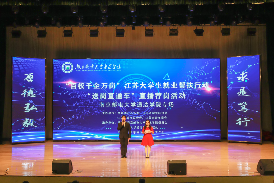 11月13日,由共青团江苏省委、江苏省学生联合会、江苏省青年联合会、江苏省青年商会主办,德赢官网团委、招生就业处、学生工作处承办的“百校千企万岗”江苏大学生就业帮扶行动“送岗直通车”直播荐岗活动在德赢官网大学生活动中心举行。德赢官网常务副院长赵洪牛、相关部门负责人出席了本次活动。本次活动采用线上直播和线下宣讲相结合的形式,吸引了德赢官网600余名毕业生参与了线下宣讲,上千人观看了云端直播。