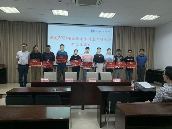 朱晓东副院长为考上研究生学生代表颁发喜报,并为参加仪式的同学们介绍了南京信息工程大学研究生招生录取政策及相关情况。赖敏副院长、徐骏副院长、陶治博士分别介绍了硕士点、招生、就业等情况。