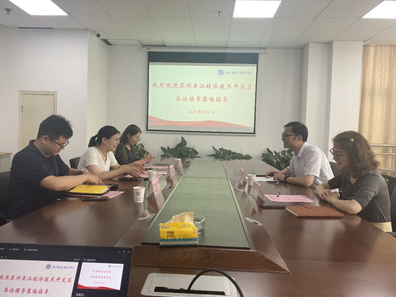王楷副书记对吴江经济技术开发区各位领导的到来表示欢迎。他从学院办学历史、专业设置、主要特色、省内及苏州市生源情况、毕业生升学就业情况等方面进行了详细介绍。