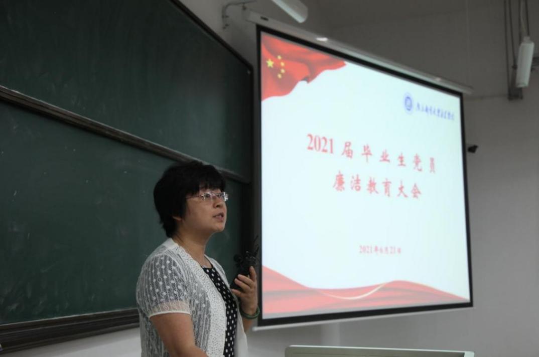 纪委办公室主任卞文献宣读毕业生廉洁寄语,她勉励大家要崇廉尚洁,明纪守法,做严于律己的规矩人;要从善求美,明辨笃行,做身清气正的奋斗者;要勤勉务实,求真力行,做锐意进取的实干家;要坚定信仰,志存高远,做勇担重任的追梦人。