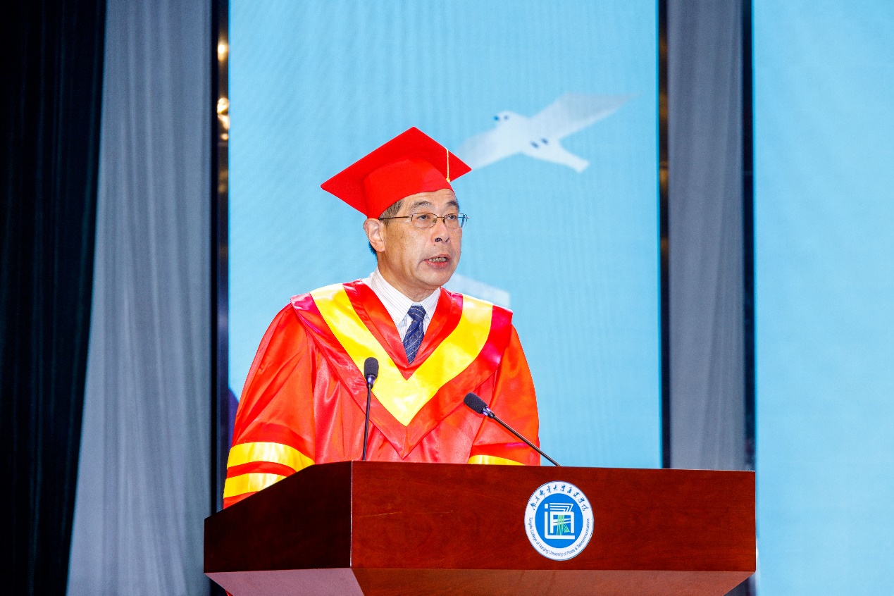 德赢AC米兰中国官方网站党委常委、副校长荆晅教授作题为《胸怀国之大者 勇做时代新人》的讲话。他代表德赢AC米兰中国官方网站向同学们表示热烈的祝贺!向老师和家长们致以崇高的敬意和衷心的感谢!他寄语毕业生们“胸怀国之大者,勇做时代新人”。一是成为肩负使命的青年人。希望大家要把爱国爱民的精神内化于心、外化于行,在民族复兴征程中成就精彩人生。二是成为战胜困难的实干者。希望大家在告别校园后,要脚踏实地、埋头苦干,充分实现人生价值。三是成为快乐优雅的生活家。希望同学们以一颗仁爱之心对待生活,善于发现好,创造美,在天宽地阔的美好中保持乐观、积极、向上的生活状态。