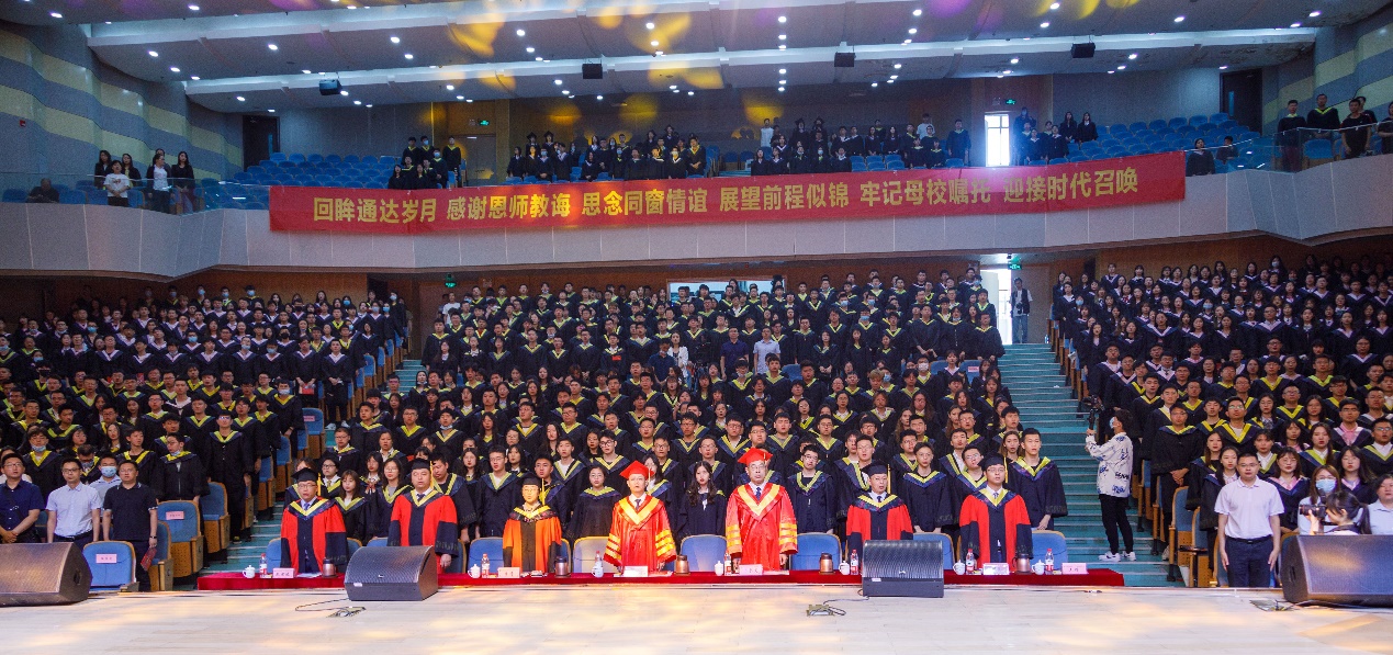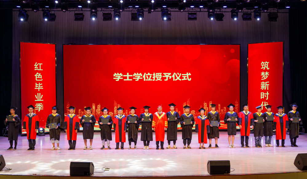毕业典礼开始前,诗朗诵《红旗下的青春》让大家重温了党的百年历史,回顾了党带领全国各族人民从南湖红船出发,到成立中华人民共和国,从改革开放到中国特色社会主义迈进新时代砥砺奋进的光辉历程,展现了党为人民谋福祉,为民族谋复兴的初心使命。