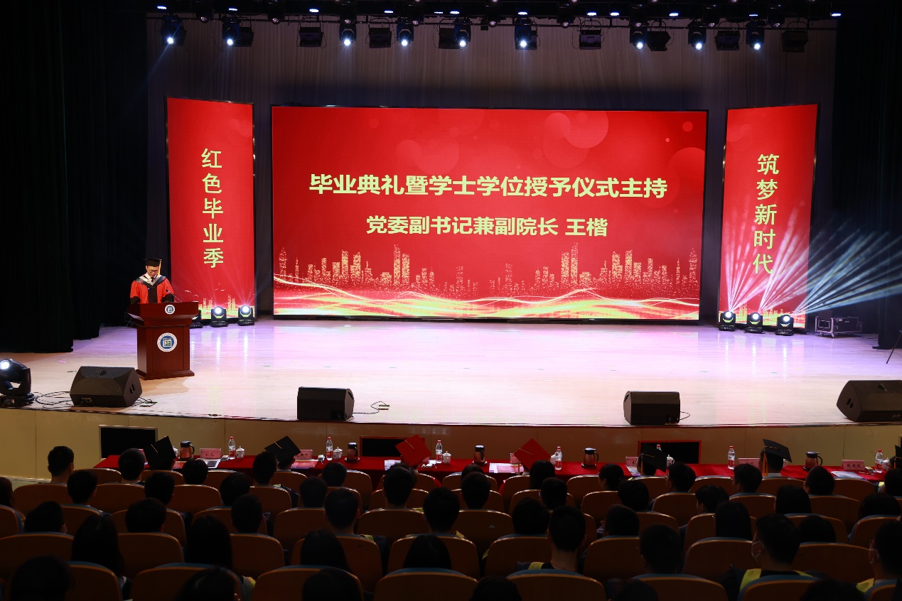 六月芳华,通达骊歌,又是一年毕业季。6月22日上午,“红色毕业季 筑梦新时代”——2021届本科生毕业典礼暨学位授予仪式在德赢官网大学生活动中心礼堂隆重举行。德赢AC米兰中国官方网站党委常委、副校长荆晅教授,全体院领导出席典礼。各职能部门和二级学院负责人、2021届毕业生、家长代表、教师代表和宿舍管理员代表等参加了典礼。毕业典礼由党委副书记兼副院长王楷主持。