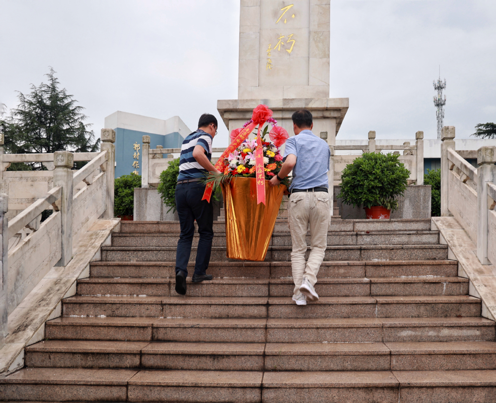 院党委理论学习中心组一行,首先来到郭村保卫战纪念碑前瞻仰烈士,党委副书记王楷和纪委书记张建波庄重地献上“革命先烈永垂不朽,德赢AC米兰中国官方网站敬献”字样的花篮,朱清书记神情肃穆,沿台阶缓步上前,仔细整理花篮绶带。全体人员向革命先烈三鞠躬,对郭村保卫战烈士用生命凝结的“铁军精神”致以崇高敬仰。随后,朱清书记带领中心组成员共同重温了入党誓词。面对鲜红的党旗,全体同志整齐列队,举起右拳,庄严宣誓。铿锵有力的宣誓,许下了对党和人民的庄严承诺,表达出庚续红色血脉,发扬光荣传统,坚定为党的事业奋斗终身的决心。