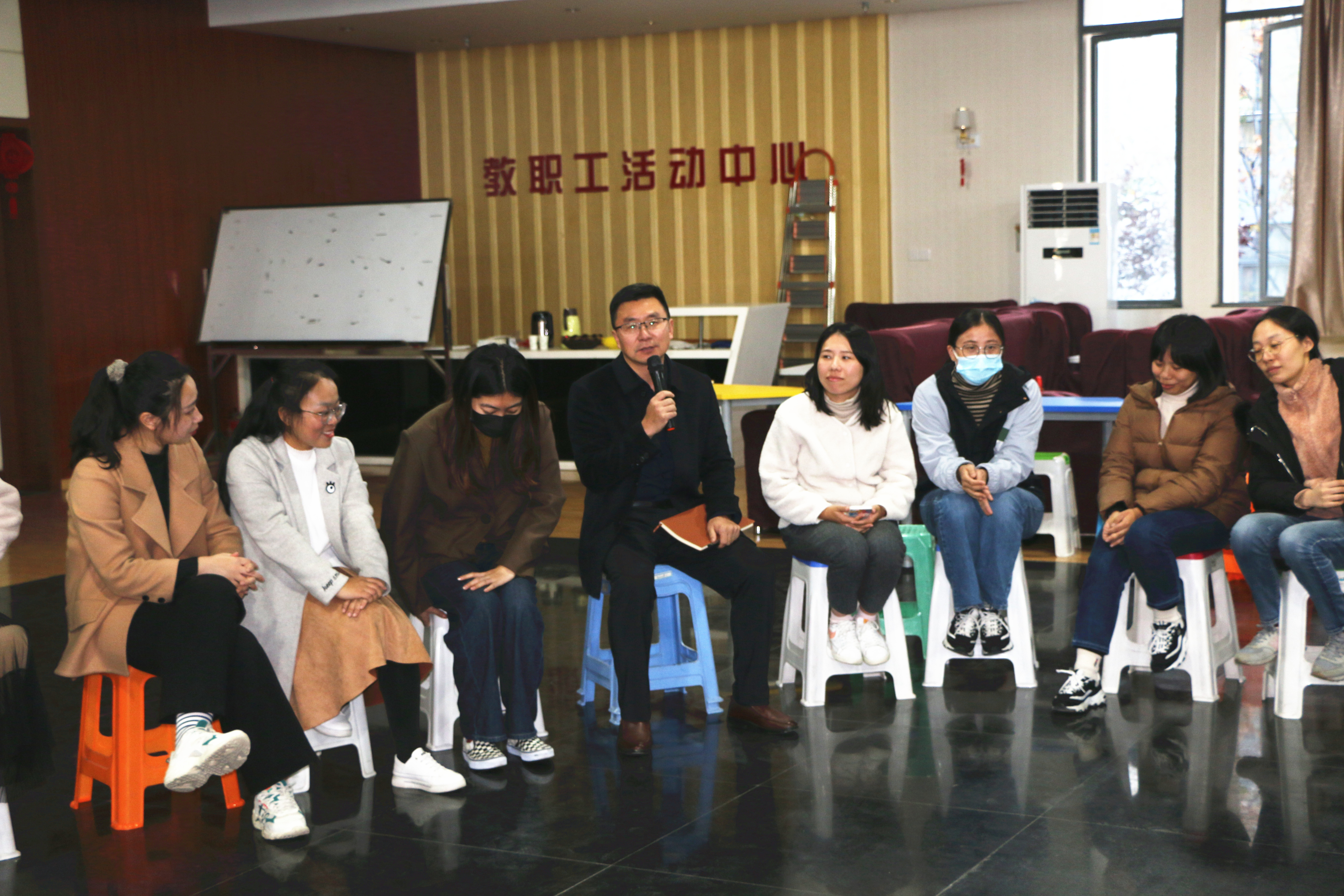 11月8日下午,德赢官网邀请德赢AC米兰中国官方网站心理健康教育与咨询中心主任陆晓花副教授在大学生活动中心教工之家开展了辅导员心理减压团体辅导活动。学院党委副书记兼副院长王楷主持本次活动。学生工作处处长解厚荣、副处长余西亚、苗东林以及各二级学院党总支副书记、全体辅导员参加了活动。