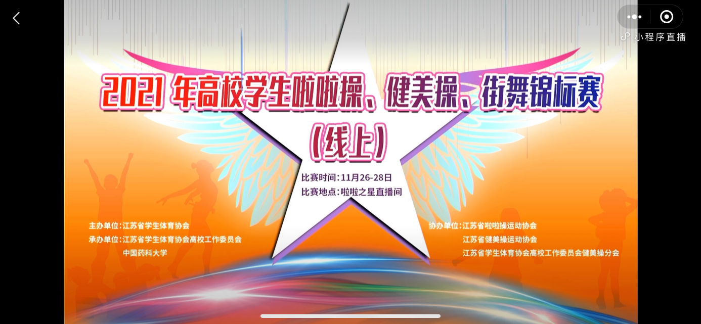 11月26-28日,2021年江苏省高校学生啦啦操、健美操、街舞锦标赛(线上)正式开赛,我院啦啦操队获得大学组花球校园示范套路第一名,啦啦操爵士规定动作3级第四名的好成绩。