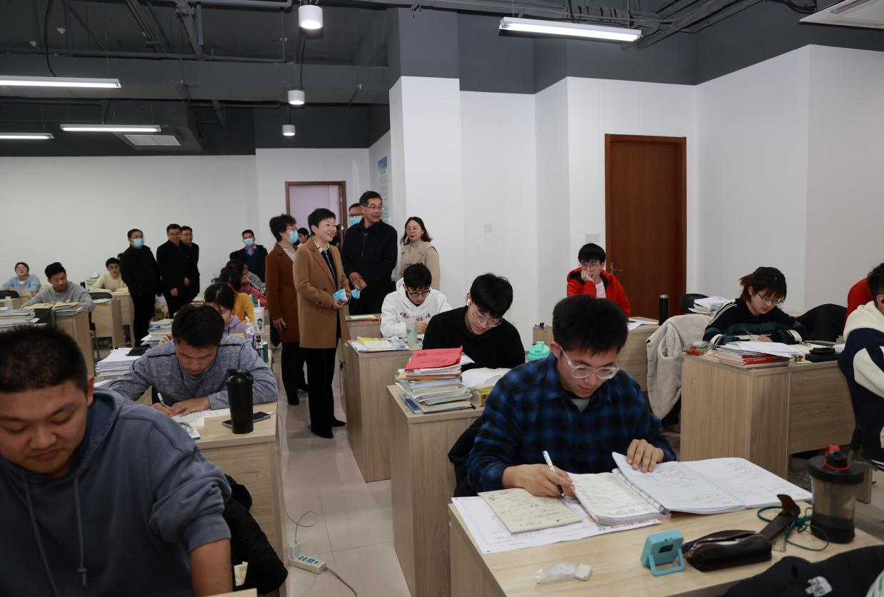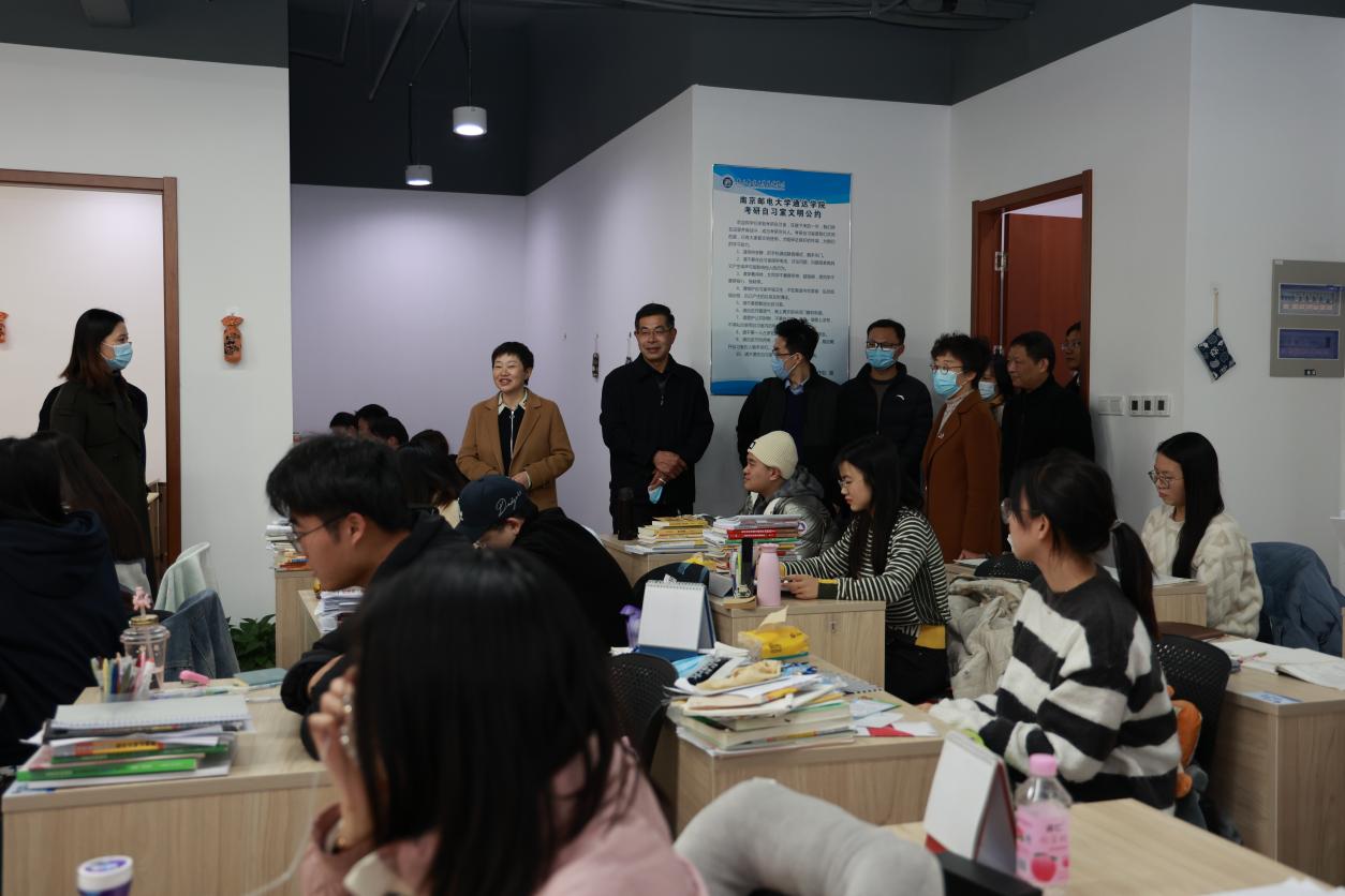 叶校长十分关心学院学生考研情况,还特地来到学生考研自习室与考研学子们亲切交谈,了解学生备考情况,并提出冲刺阶段复习建议。叶校长叮嘱学院要进一步关心支持考研学生,做好做细服务工作。
