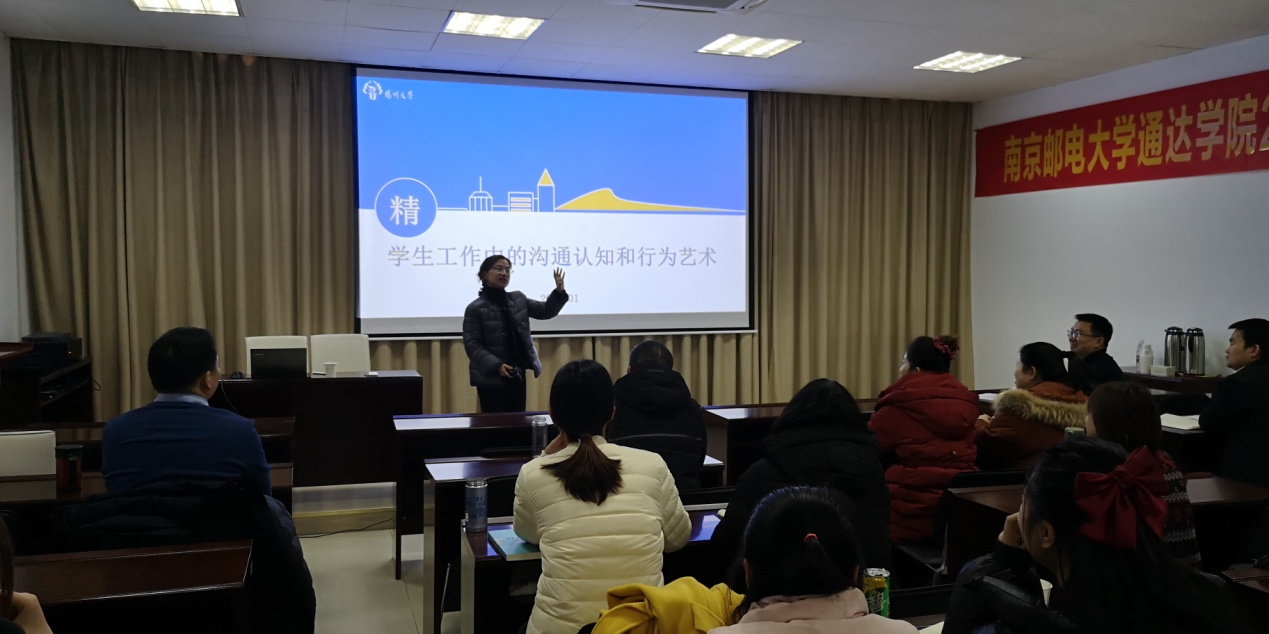 下午的培训由学工处处长解厚荣主持。扬州大学教授、博士生导师刘佳作《学生工作中的沟通认知和行为艺术》的专题报告,她从沟通的定义、沟通中存在的障碍、解决沟通障碍的方法、沟通的能力和技巧等方面,结合自身20多年的学生管理工作经历,通过丰富的学生管理案例让大家进一步认识到沟通的重要性。扬州大学党群总支书记、学生工作处副处长居学明作了《实施“四大计划”,打造硬核辅导员队伍》专题报告,他从高校辅导员队伍建设与发展历程回顾、辅导员队伍建设面临的“困境”和辅导员队伍建设的实践探索三个维度,结合扬大的实际经验,重点分享了辅导员队伍建设的“四大计划”。