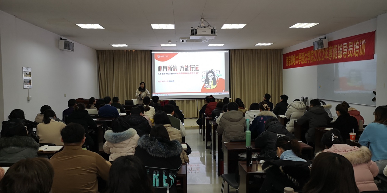 上午的培训由德赢官网党委副书记兼副院长王楷主持。德赢AC米兰中国官方网站学工处副处长吴波作了《立德树人——辅导员思政工作经验交流》专题报告,他结合多年学生工作经验,从“七大育人工程”出发深入浅出的阐述了做好大学生思想政治工作的意义和作用。南邮招生就业处就业创业管理科科长王新涛作了《新形势下提升高校毕业生就业工作实效性的思考》专题报告,他从历年升学就业数据出发,结合自身就业工作经验,分析了学生就业升学中可能出现的各种情况,并从就业工作的效度、温度、厚度、力度四个方面给辅导员做好就业工作提供了方向。第十三届全国“高校辅导员年度人物提名奖”、第八届全国高校辅导员素质能力大赛一等奖、2021年江苏省“最美高校辅导员”、第八届江苏高校辅导员素质能力大赛一等奖获得者,南邮外国语学院分团委书记高艳丽作了《从不断改革的大赛中悟辅导员素质能力提升之“钥”》专题报告,她从辅导员素质能力大赛历年改革的角度出发,提出做好辅导员工作要注重深耕细作,加强学习和交流,不断提升自我,更要有对辅导员岗位的高度认同,才能适应社会对辅导员越来越高的要求。
