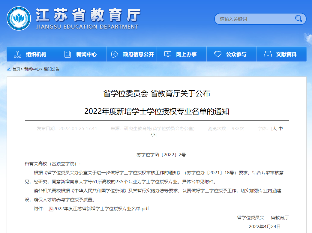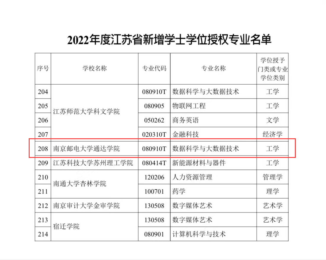 近日,江苏省学位委员会下发了《省学位委员会 省教育厅关于公布2022年度新增学士学位授权专业名单的通知》(苏学位字函〔2022〕2号),德赢官网数据科学与大数据技术专业通过学士学位授权评审,顺利获得学士学位授予权。
