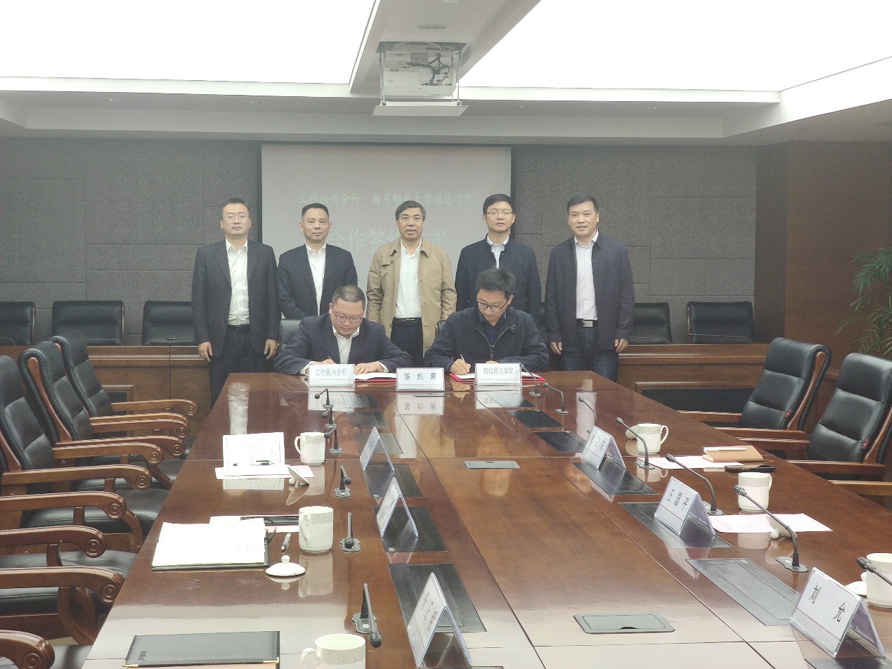 5月10日下午,德赢AC米兰中国官方网站与中国工商银行扬州分行银校合作备忘录签约仪式在中国工商银行扬州分行5楼举行。中国工商银行扬州分行党委书记、行长苏伟,副行长乐正明,学院院长王国平,副院长刘允等领导出席签约仪式。
