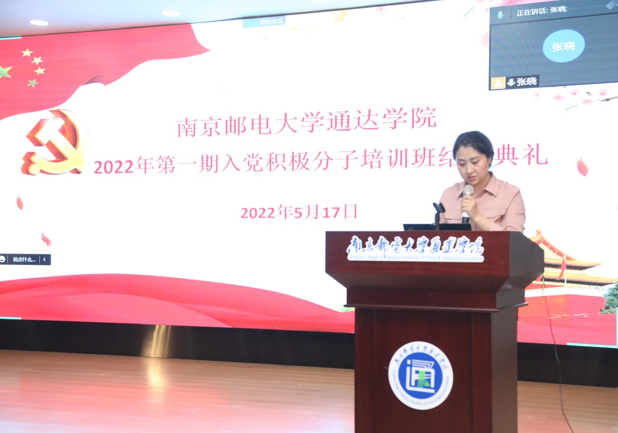 5月17日晚,德赢官网2022年第一期入党积极分子培训班结业典礼在实验楼报告厅举行。学院党委副书记兼副院长王楷,相关二级学院党总支副书记、入党积极分子实践班班主任及185名学员以线上线下相结合的方式参加结业典礼,结业典礼由党校培训班班主任张晓主持。