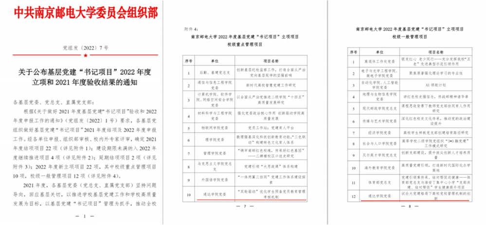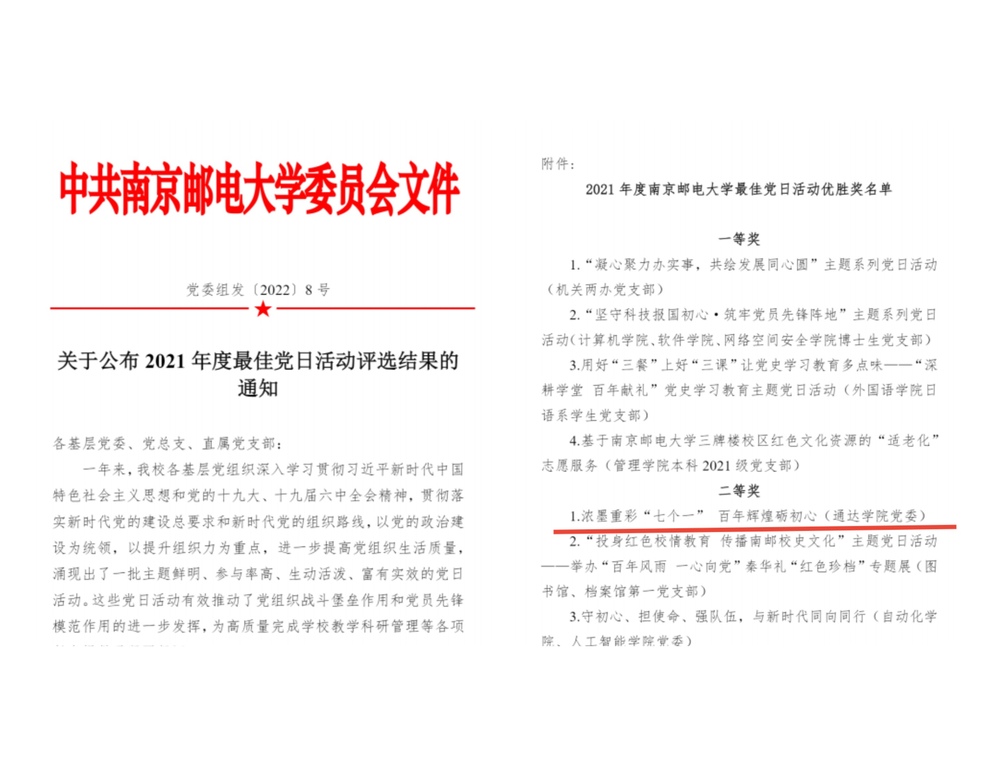 近日,校党委公布了2021年度最佳党日活动优胜奖名单和2022年度基层党建“书记项目”立项项目名单。德赢官网党委“浓墨重彩‘七个一’百年辉煌砺初心”获2021年度最佳党日活动优胜奖二等奖;院党委“‘双轮驱动’优化学生预备党员教育管理考核机制”获2022年度基层党建“书记项目”校级重点管理项目;同时,院党委“试论大党建格局下高校党校管理机制的创新” 获2022年度基层党建“书记项目”校级一般管理项目。这是德赢官网基层党建工作取得的又一批新成果,是德赢官网基层党建标准化建设水平显著提升的具体表现。