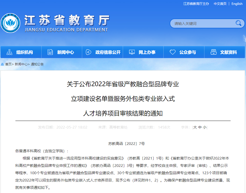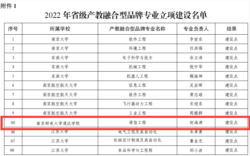 5月27日,德赢官网专业建设再次传来喜讯,江苏省教育厅发布了《关于公布2022年省级产教融合型品牌专业立项建设名单暨服务外包类专业嵌入式人才培养项目审核结果的通知》(苏教高函【2022】7号),通信工程专业在2022年江苏省本科高校产教融合型品牌专业申报评选中脱颖而出,成为全省独立学院中唯一入选产教融合型品牌专业建设点的专业。