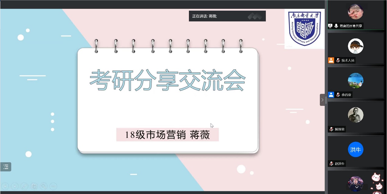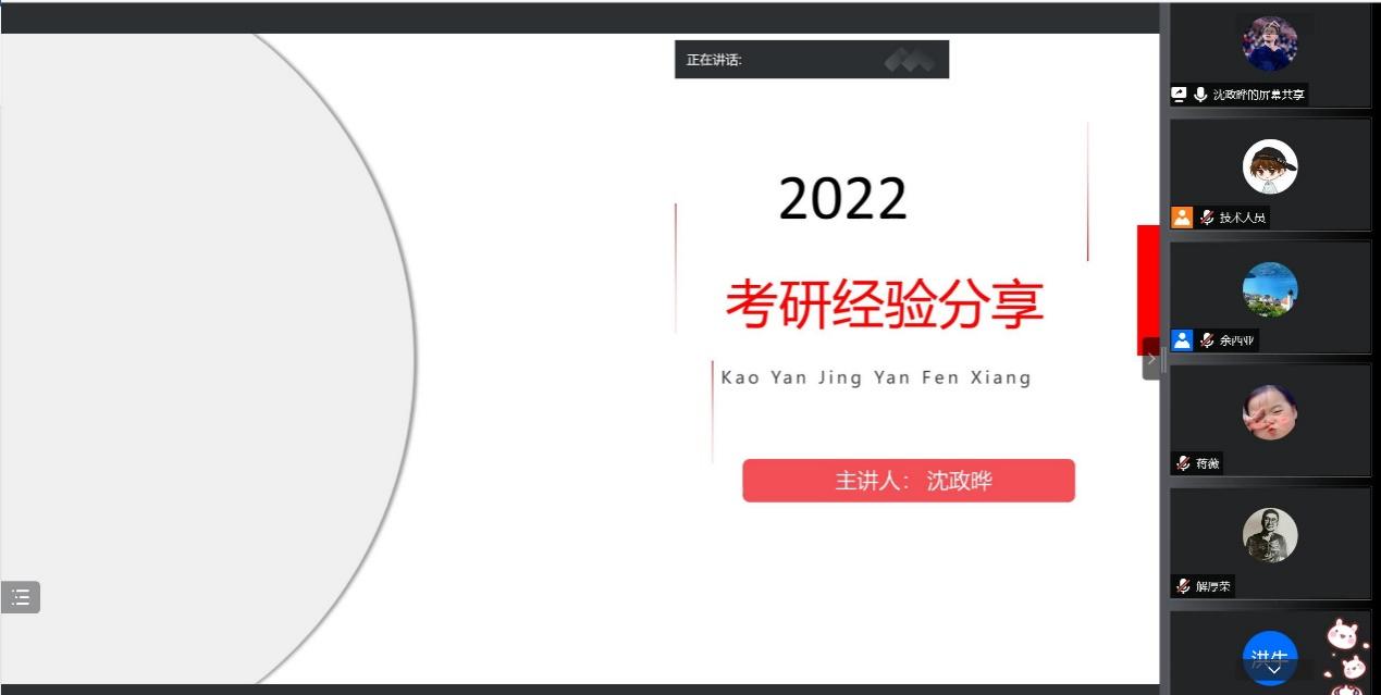 本次活动还邀请了两位2022届考研成功学生做经验分享。以405分考取德赢AC米兰中国官方网站社会学专业的蒋薇同学、以343分考取江苏师范大学通信工程专业的沈政晔同学,围绕如何选择目标院校和专业,如何找到适合自己的学习方法提高复习效率,如何进行心理调适等同学们关心的内容进行了详细的分享,为正在备考的2019级考研学子提供了非常有参考价值的建议。
