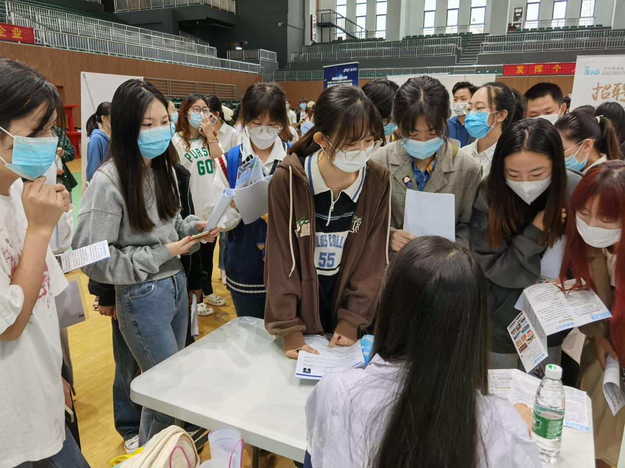 招聘会尚未开始,前来求职的同学便排起了长队,经统计,共有1200余名学生到场参加。九月份处于秋招的黄金期,经过前期的组织动员,大四同学都对本次招聘会期待已久,摩拳擦掌,对简历、面试等都做了精心准备。活动现场,人流涌动,企业与学生积极交流互动,有的企业展位前求职学生排成了长队,上海华振物流招聘负责人表示,“本次招聘会他们收到了一百多份简历,通达的学生都很积极,本次招聘会非常值得”。部分企业下午直接在学院进行笔试面试。现场学生也表示,“疫情背景下毕业生求职增加了难度,学校通过举办招聘活动,为毕业生搭建了与企业沟通的平台,为学生求职提供了便利”。