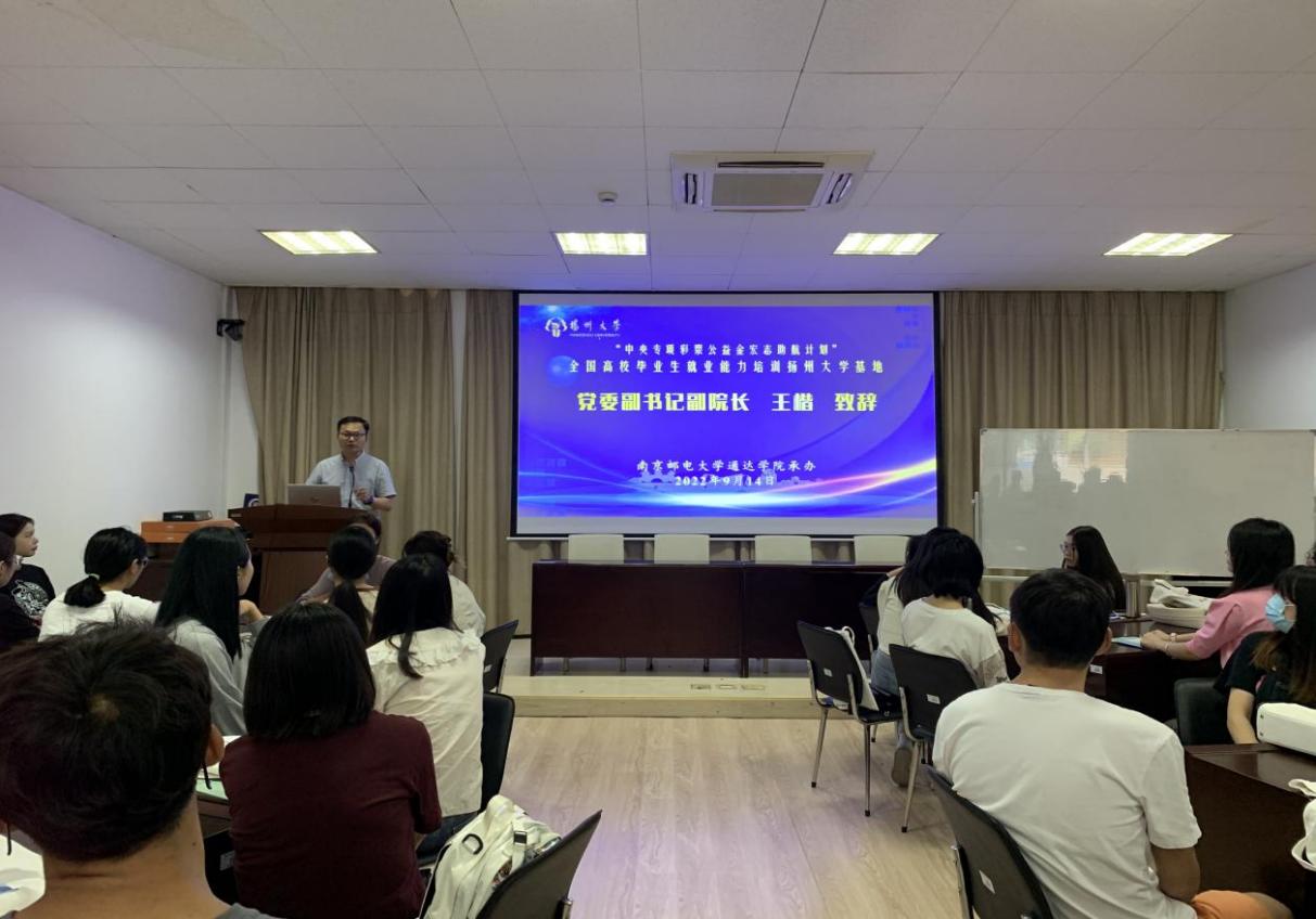 开班仪式上,王楷副书记代表学院致辞。他表示,2023届学生目前正面临求职就业的关键时期,本次培训机会非常及时、弥足珍贵,将有助于同学们了解当前求职就业现状,提高个人求职竞争力,并希望大家认真学习,积极参与,努力提升自己的求职能力。