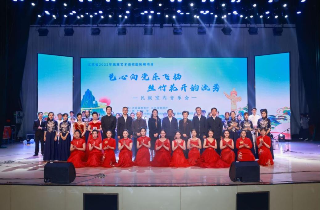 11月9日下午,2022年度高雅艺术进校园活动“艺心向党乐飞扬,丝竹花开韵流芳”民族室内音乐会在德赢官网大学生活动中心礼堂举行。扬州大学音乐学院院长邵萍,扬州大学公共艺术教育中心主任、音乐学院副院长姚霆,学院院长王国平,党委书记朱清,副院长刘允,党委副书记兼副院长王楷,团委等相关部门负责人以及千余名学生观众参加本场活动。