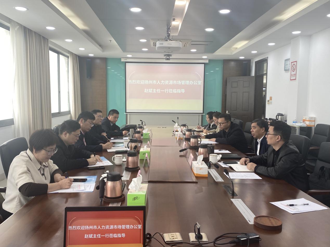 11月10日上午,扬州市人力资源市场管理办公室联合党委书记、主任赵斌率队来德赢官网调研。扬州市人力资源市场管理办公室副主任陈炜、就业指导部部长徐俊、人才招引部部长郭明、市场管理运行部部长高友珍参与调研,德赢官网院长王国平,党委副书记、副院长王楷,招生就业处处长解厚荣等参与了接待。